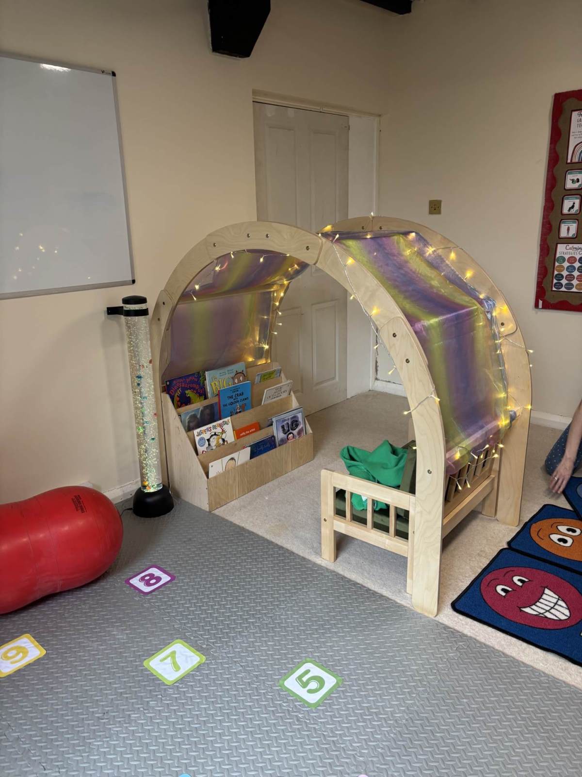 The third room in The Hive is a dedicated sensory room, a calm and inviting environment designed to help children self-regulate and prepare to learn. Here, pupils can access a variety of sensory activities tailored to their individual needs—ranging from soothing light displays and gentle sounds to tactile resources and movement-based equipment. This space plays a vital role in supporting emotional regulation, reducing anxiety and helping children return to the classroom ready to focus and engage.